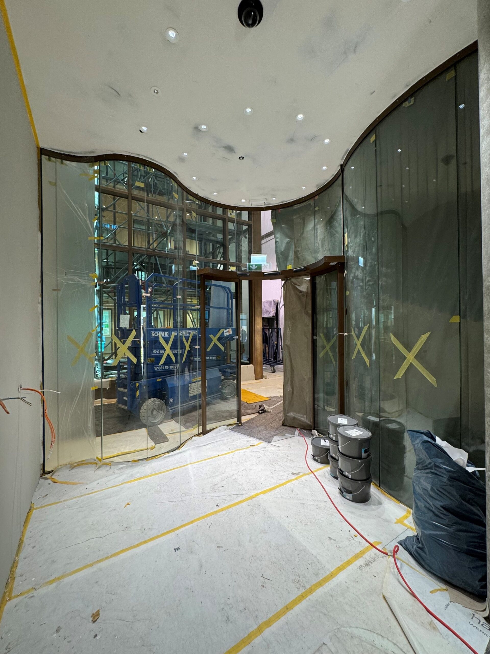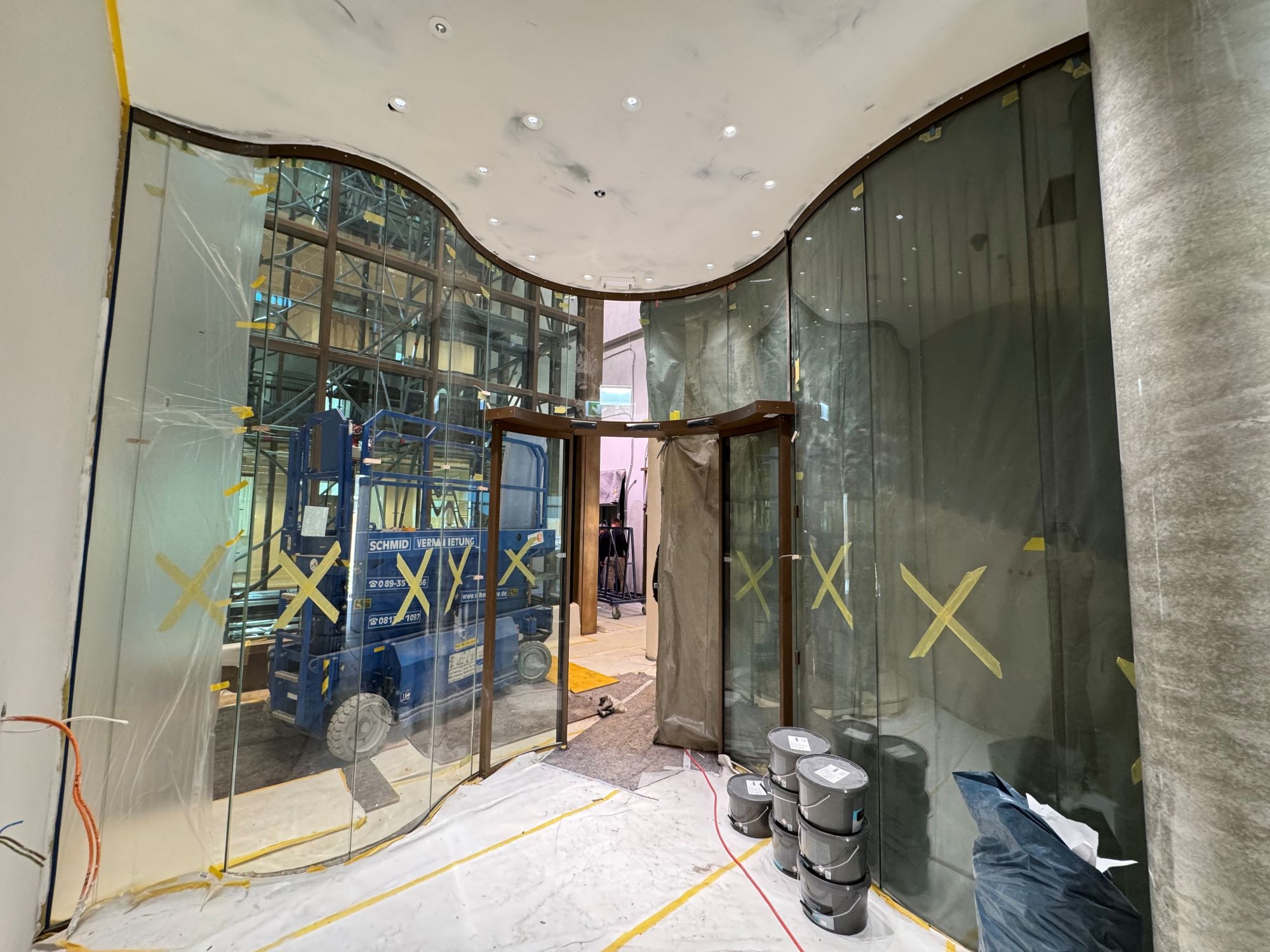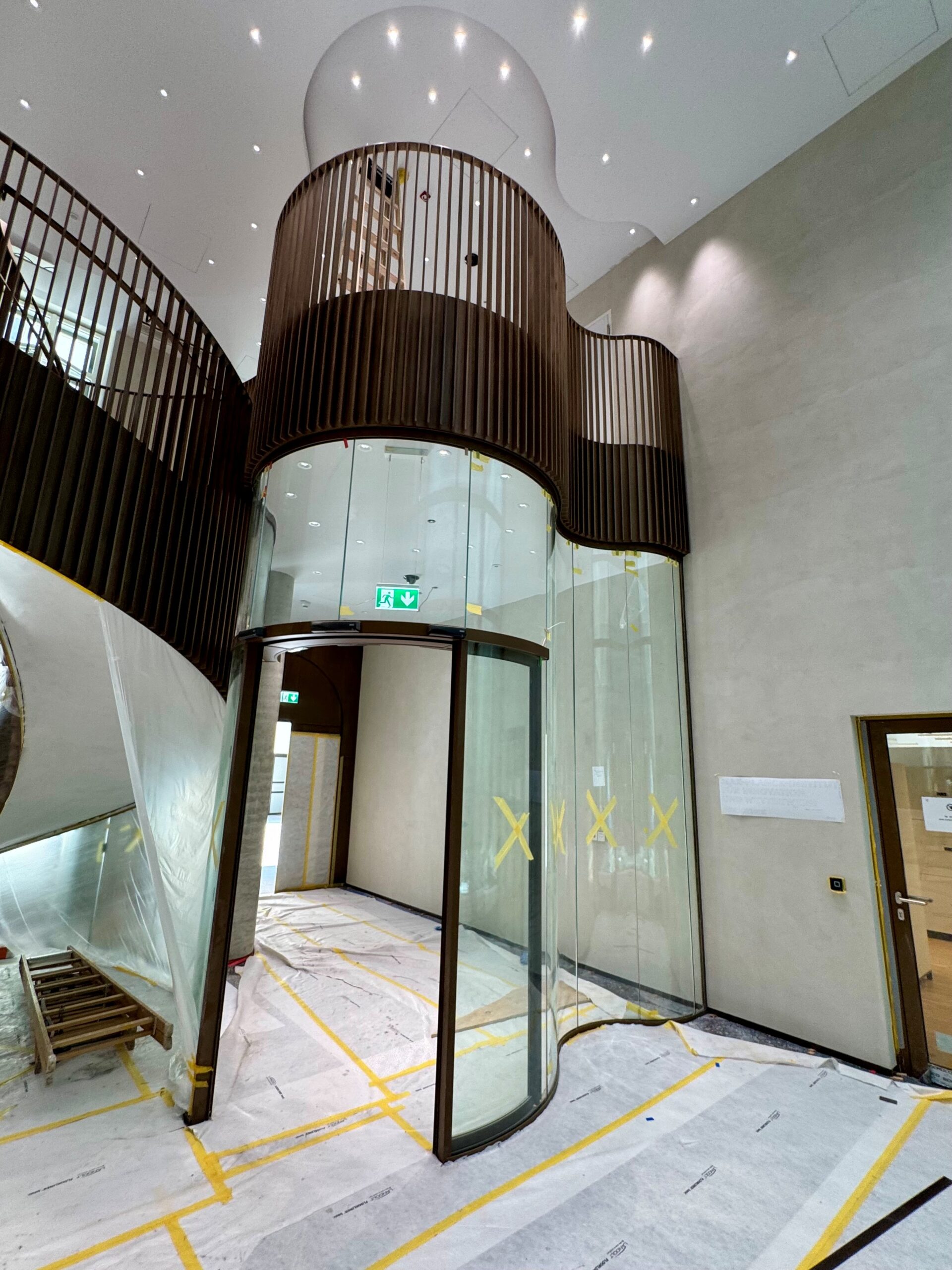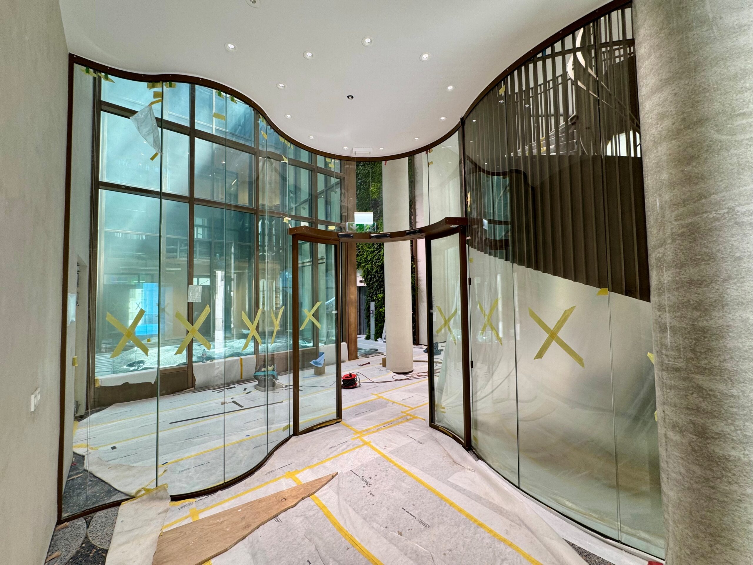 • Geschwungener Windfang mit gebogener Automatikschiebetüre