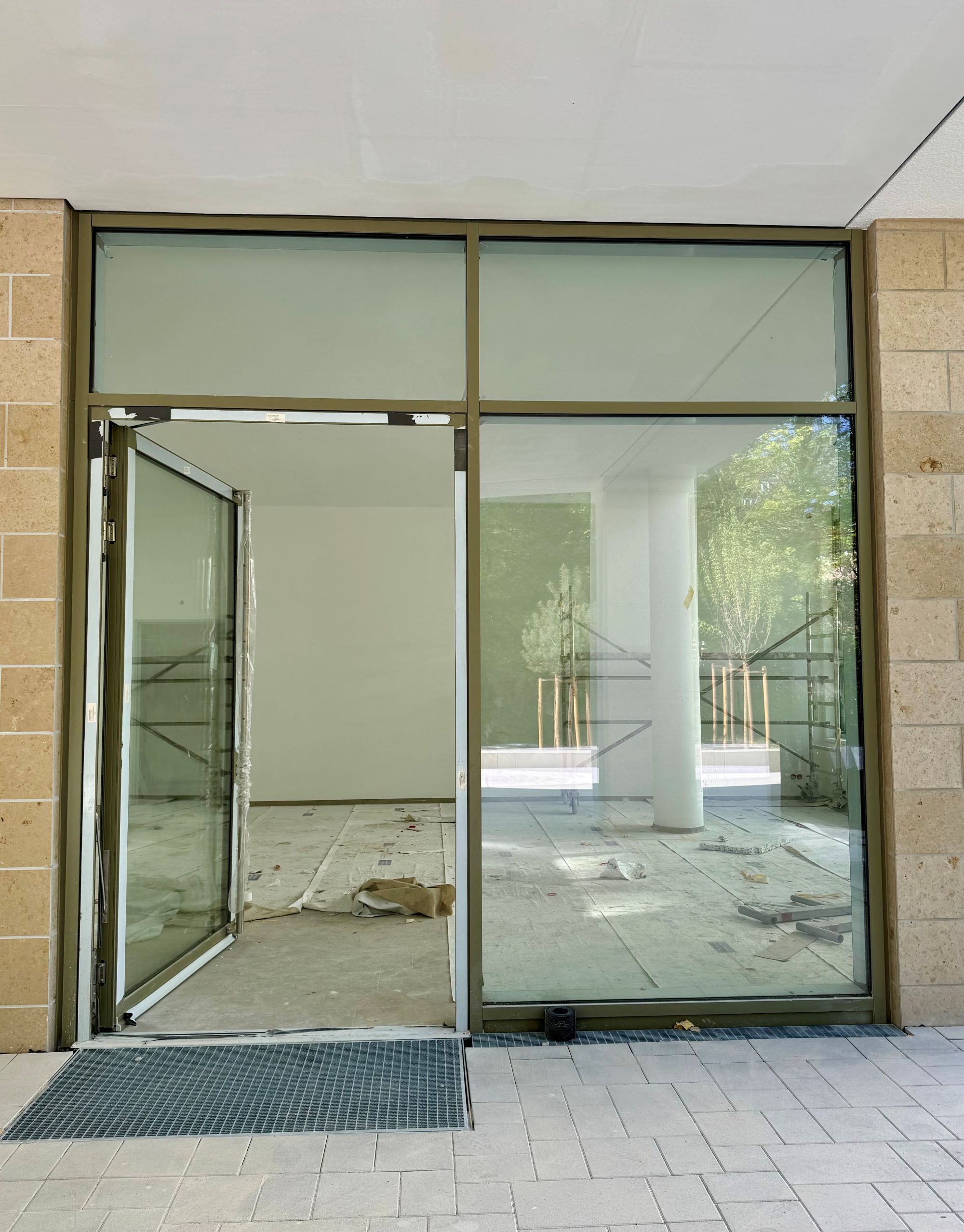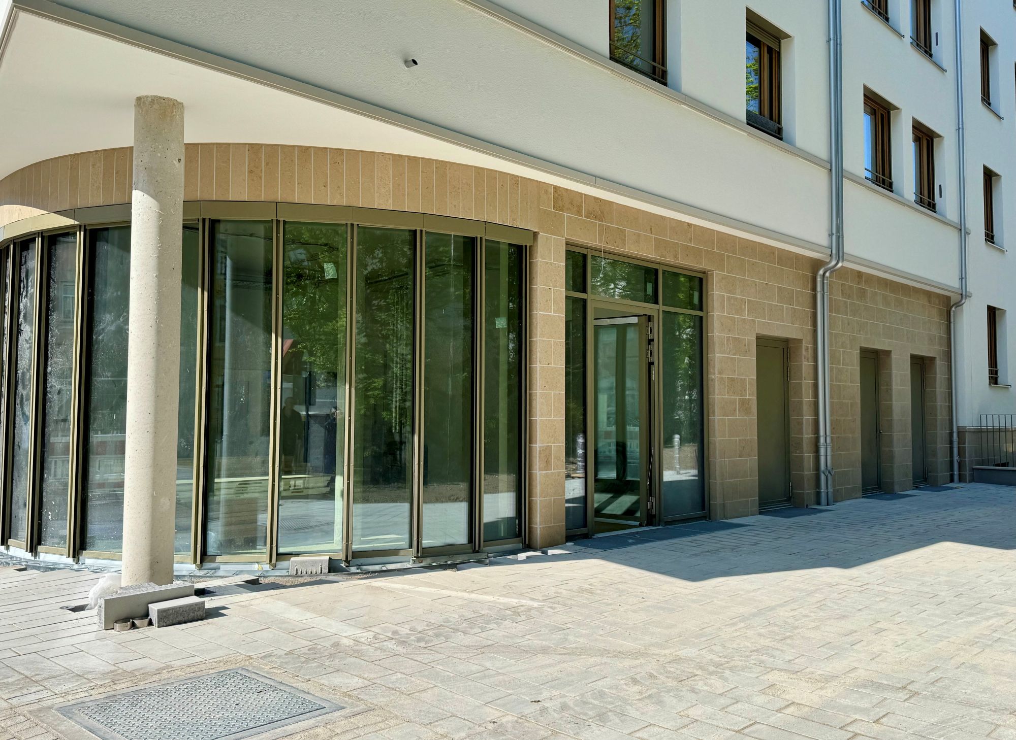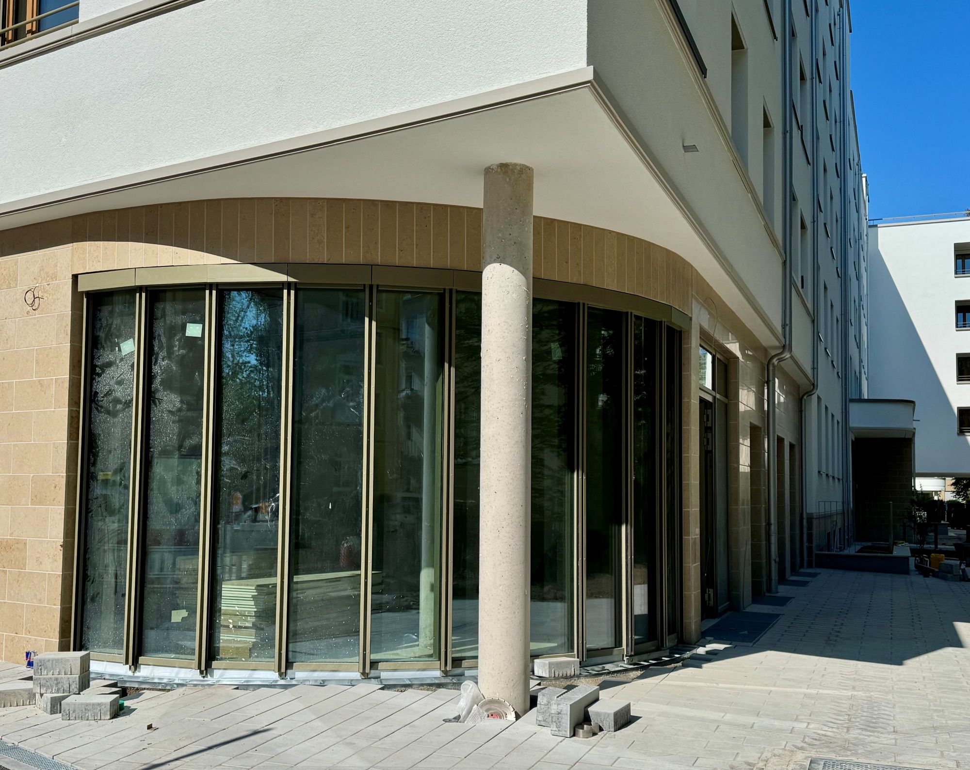 • Geschwungener Windfang mit gebogener Automatikschiebetüre