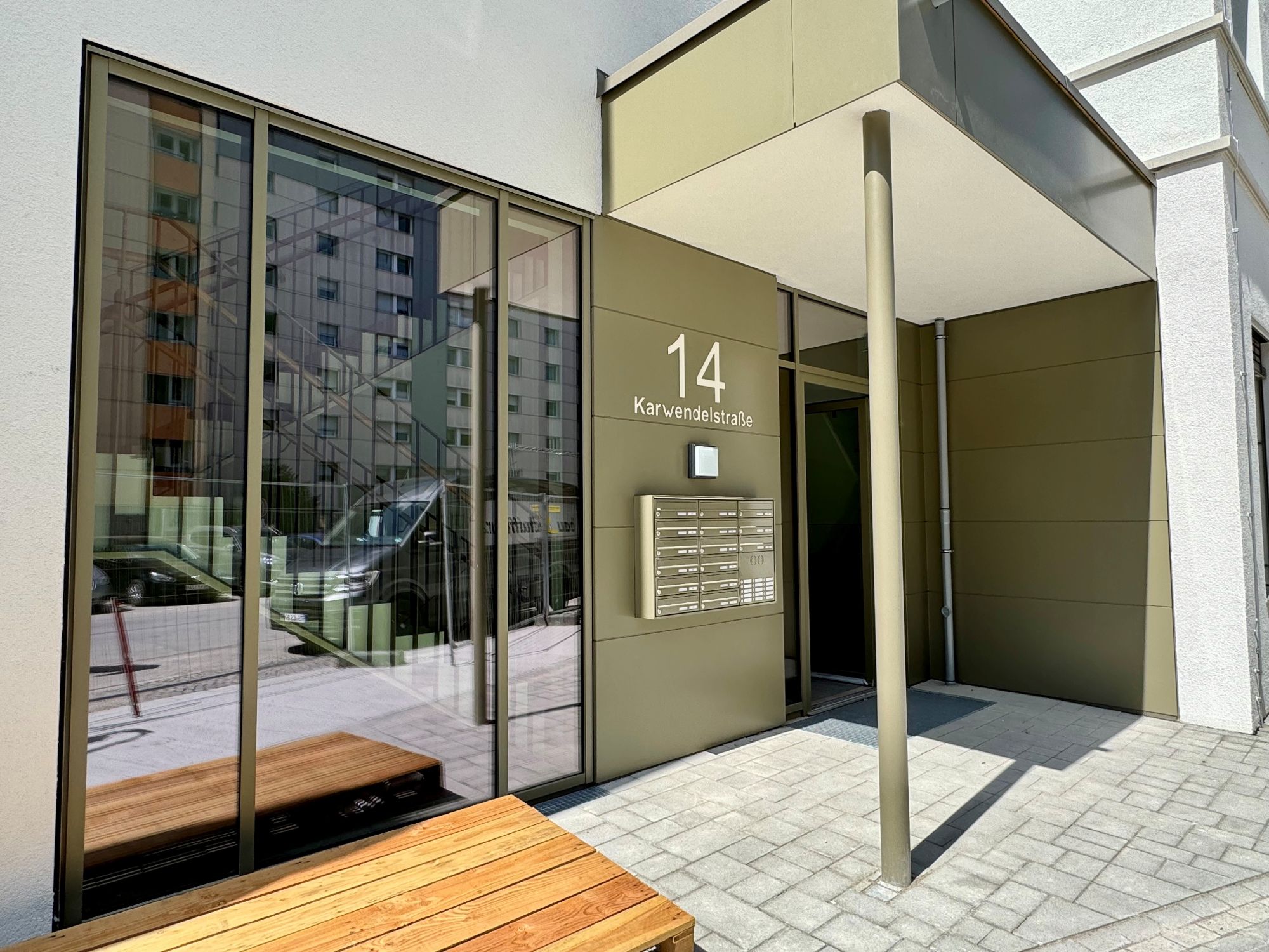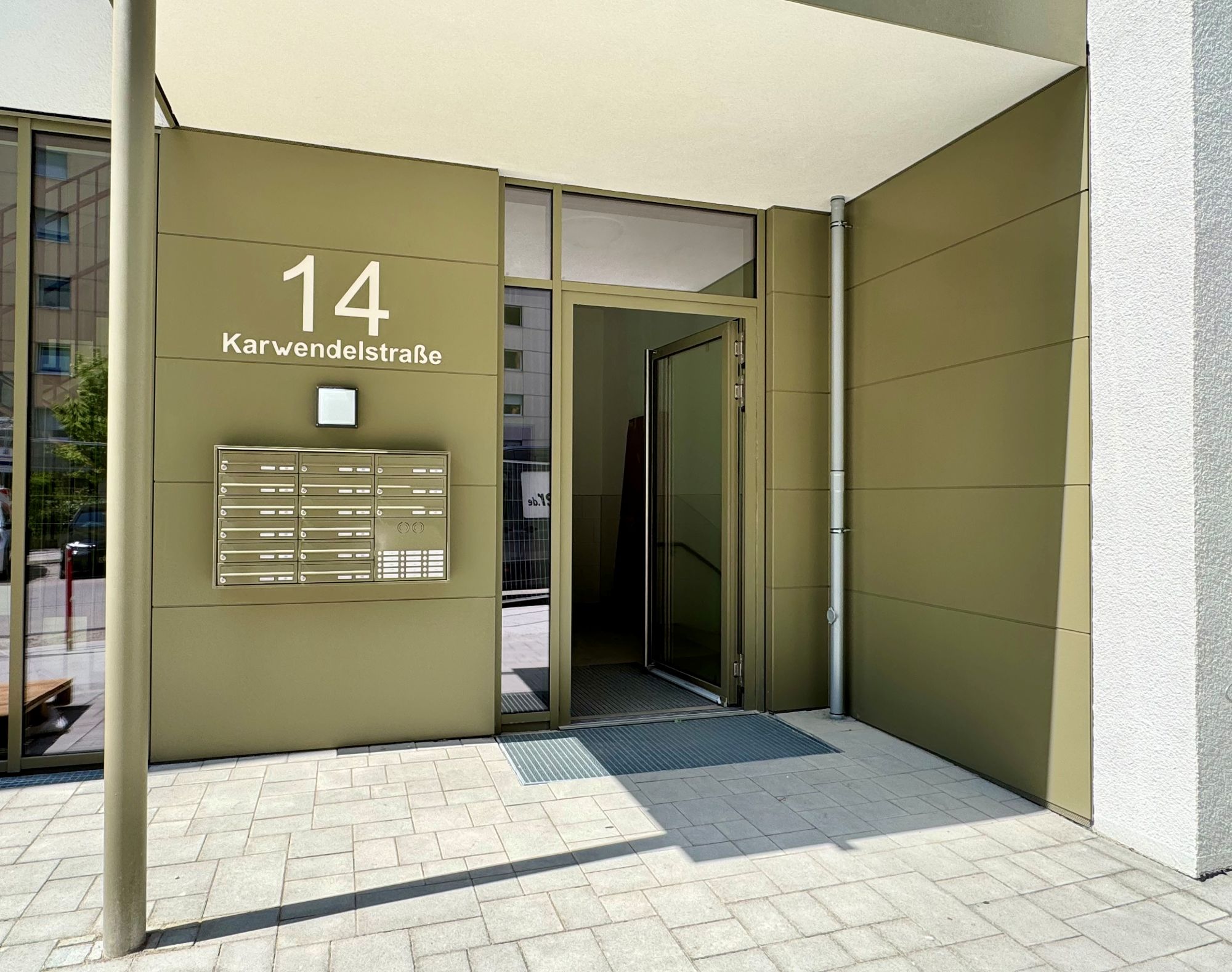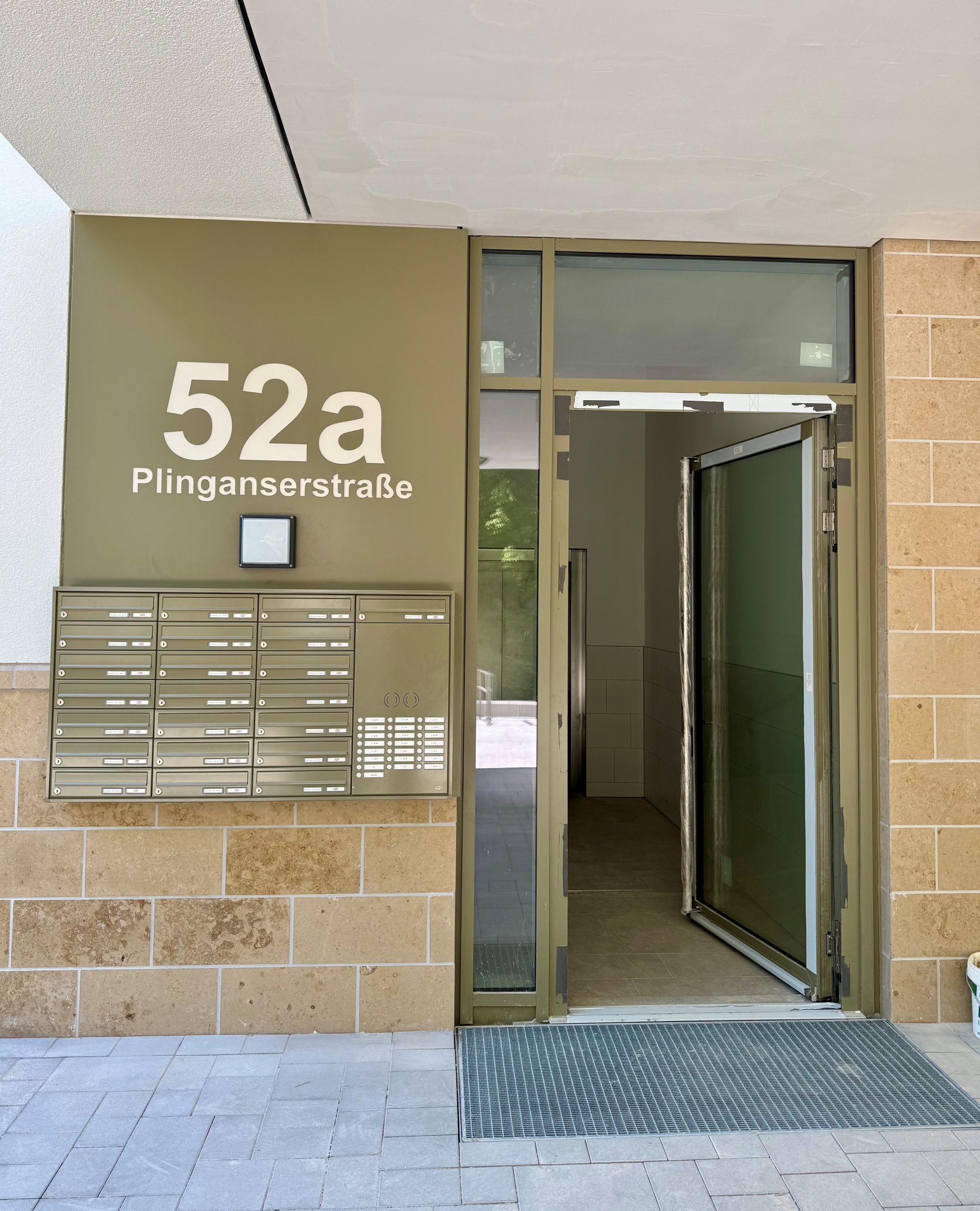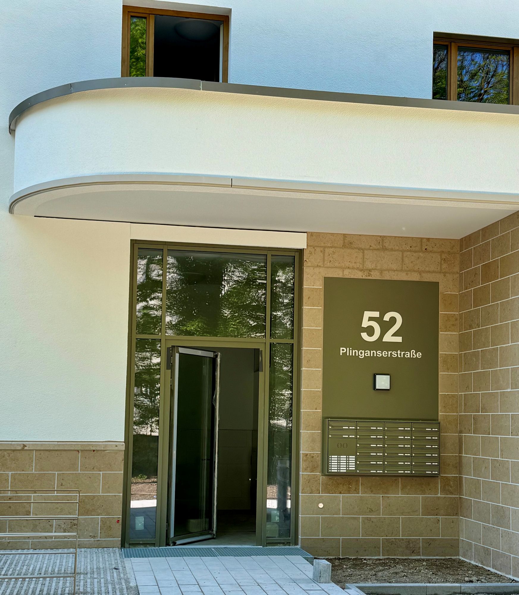 • Geschwungener Windfang mit gebogener Automatikschiebetüre